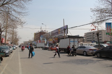 黄河四路与渤海四路交汇处新兴市场物流中心楼顶大牌