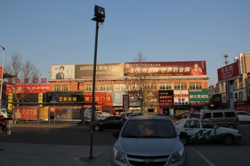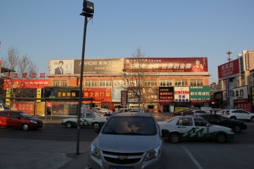 渤海八路与黄河一路交汇处高杜建材城楼顶大牌