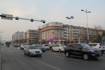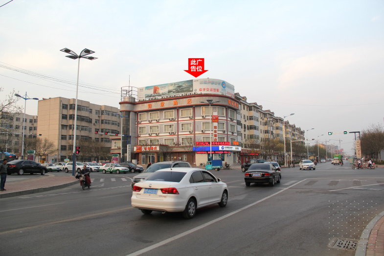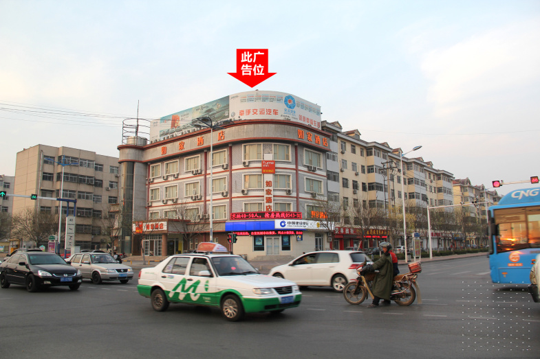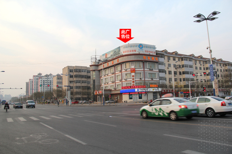 黄河七路与渤海十路交汇处东北角楼顶大牌